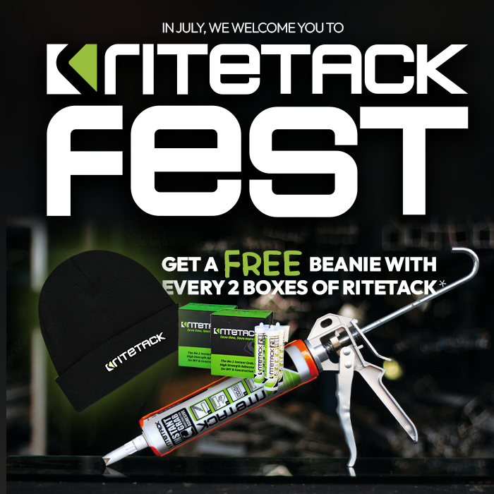 With our shelves restocked on Australia's no. 1 adhesive, it's time to get back to business. And to keep you going on these cold winter mornings, we are giving away a FREE Ritetack-branded beanie with every 2 boxes (24 tubes) of Ritetack purchased!